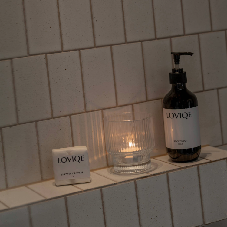 Break the steamer into quarters as your shower warms, placing one piece on the floor away from direct water. Begin with our Body Wash for a gentle cleanse, then apply Body Lotion to slightly damp skin to lock in moisture, leaving it soft and smooth. Store the steamers in the muslin bag provided and hang it on your shower door as a subtle reminder to enjoy a soothing experience. Give the gift of Lure—designed to create moments of relaxation and connection, whether your partner enjoys it alone or you share a calming escape together. This thoughtful set invites you both to indulge in a sensory ritual that brings you closer.