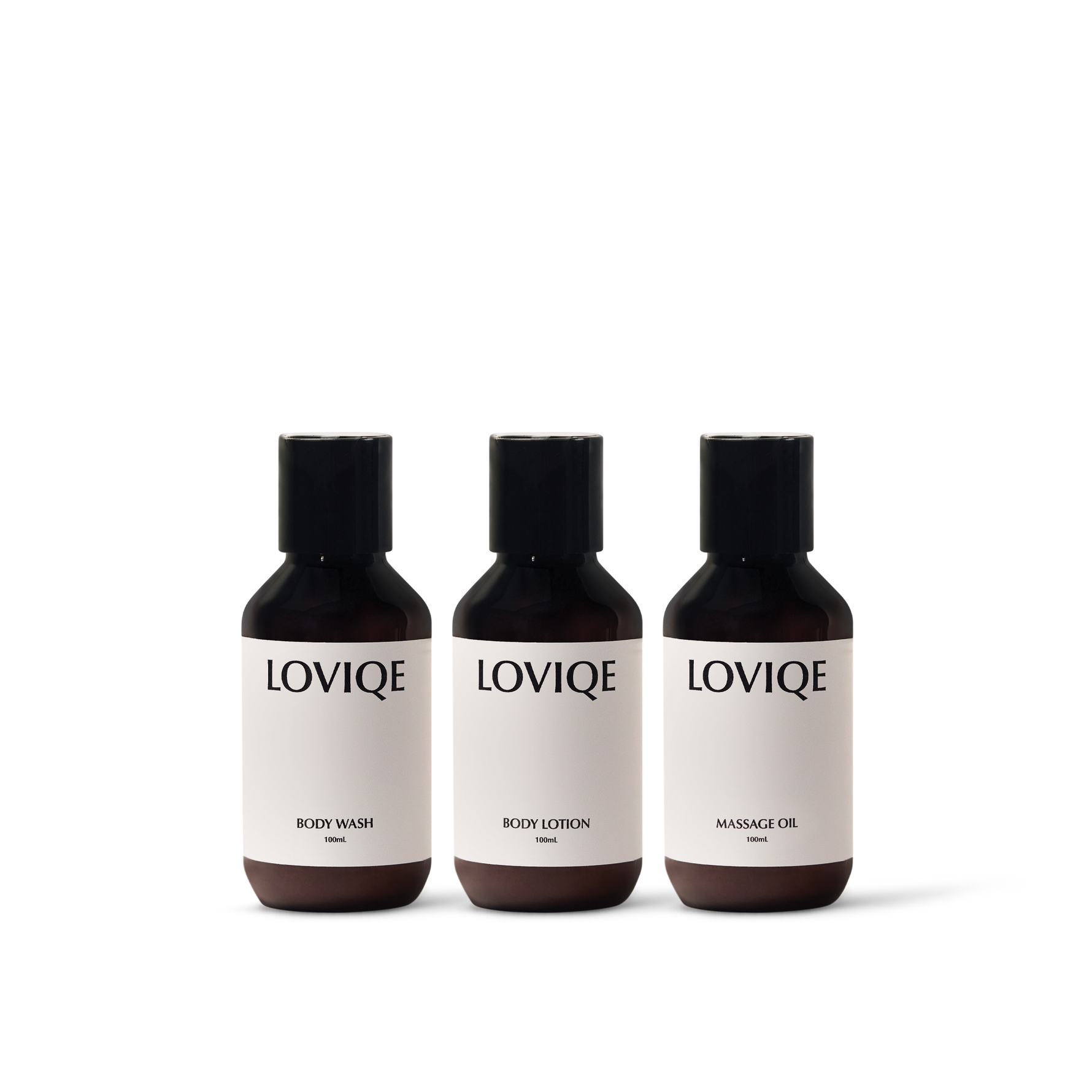 Begin with our Body Wash for a gentle cleanse, then apply Body Lotion to slightly damp skin to lock in moisture. Finish with Massage Oil to deeply nourish and hydrate, leaving skin soft and smooth. Give the gift of Loviqe Petites—designed to create meaningful moments of relaxation wherever you go. Perfectly sized for travel or discovery, this thoughtful set offers a soothing ritual to help you unwind and reconnect, no matter where your journey takes you.