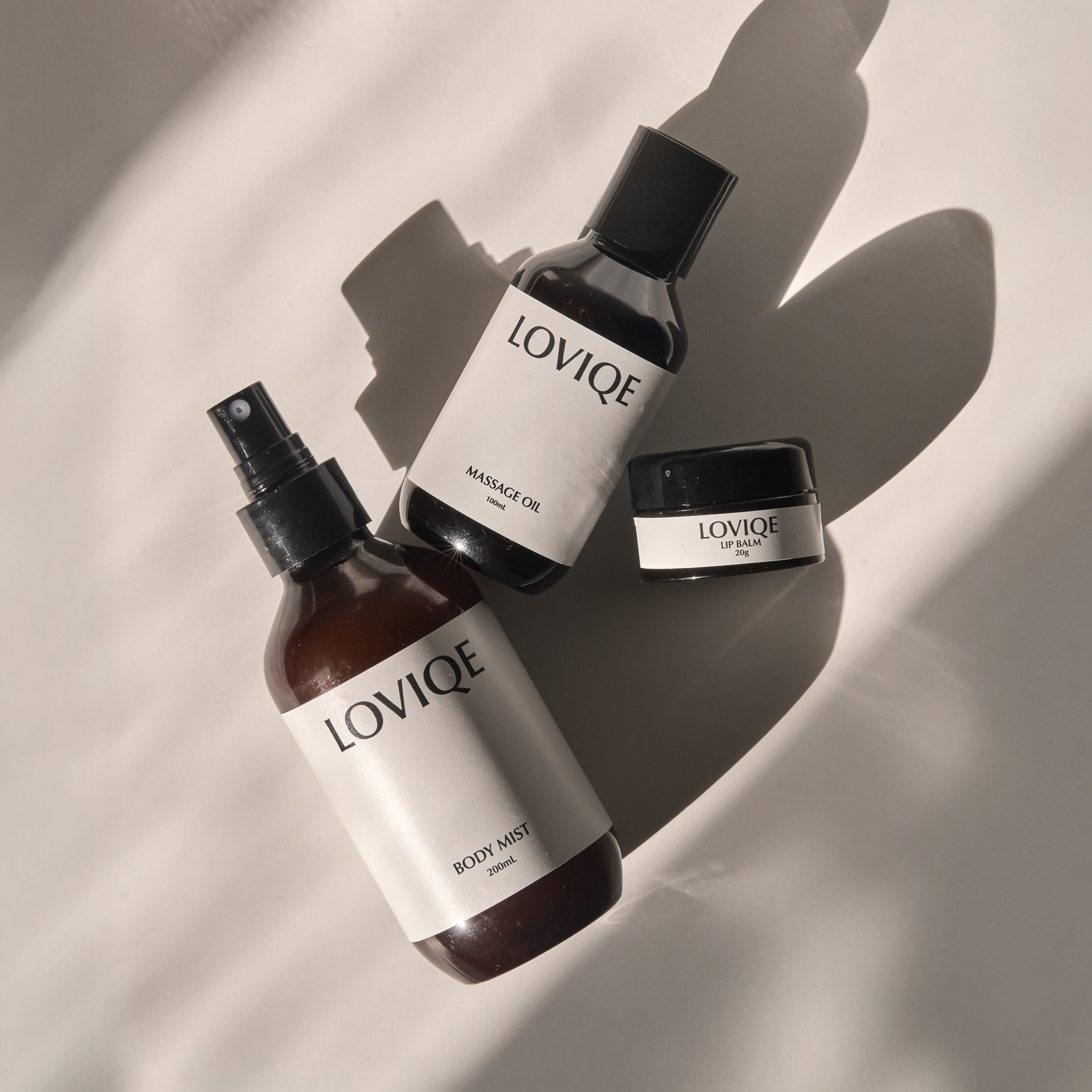 Mood-setting Body Mist, gliding Massage Oil, and nourishing Lip Balm—designed to work together to create skin and space that invites touch, presence, and connection. Each product supports a different aspect of intimacy: aroma, glide, and nourishment, transforming care into a shared sensory ritual.